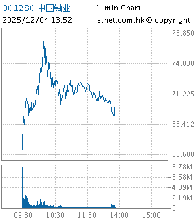 N 001280 | N CHINA URANIUM | 67.990 | +50.100 | +280.04% | 8.089B | 122.599M | -- | |