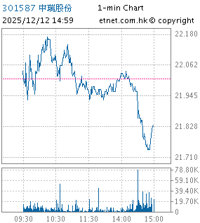 | This information is provided by ET Net Limited ("ET Net") and/or its third party information providers (the "Sources") and is strictly for reference only. It is not intended to provide any financial or professional advice and any person should not rely upon the same as such. You should obtain relevant and specific professional advice before making any investment decision. Before making an investment decision, you should consider, with the assistance of your professional securities adviser, whether the information is appropriate in light of your particular investment needs, objectives and financial circumstances. ET Net and the Sources endeavor to ensure the accuracy and reliability of the information provided. Notwithstanding the aforesaid, ET Net, the Sources and Bank of China (Hong Kong) Limited do not guarantee or make any representation, warranty or undertaking as to the accuracy, reliability, completeness or timeliness of this information, and accept no responsibility or liability whatsoever (whether in tort or contract or otherwise) for any loss or damage howsoever arising from or in reliance upon the whole or any part of such information. |