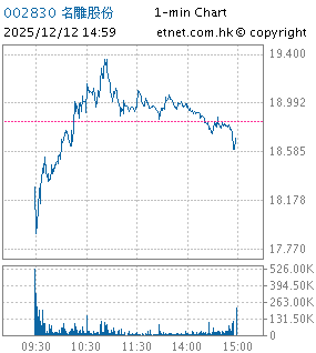 | This information is provided by ET Net Limited ("ET Net") and/or its third party information providers (the "Sources") and is strictly for reference only. It is not intended to provide any financial or professional advice and any person should not rely upon the same as such. You should obtain relevant and specific professional advice before making any investment decision. Before making an investment decision, you should consider, with the assistance of your professional securities adviser, whether the information is appropriate in light of your particular investment needs, objectives and financial circumstances. ET Net and the Sources endeavor to ensure the accuracy and reliability of the information provided. Notwithstanding the aforesaid, ET Net, the Sources and Chiyu Banking Corporation Limited do not guarantee or make any representation, warranty or undertaking as to the accuracy, reliability, completeness or timeliness of this information, and accept no responsibility or liability whatsoever (whether in tort or contract or otherwise) for any loss or damage howsoever arising from or in reliance upon the whole or any part of such information. |