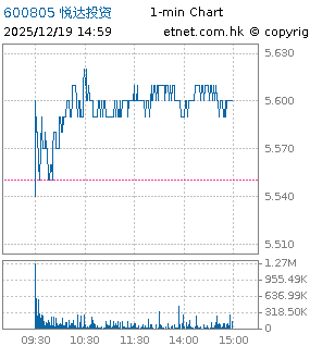 N 600805 | YUEDA INV | 5.600 | +0.050 | +0.90% | 106.607M | 19.080M | 186.67 | |